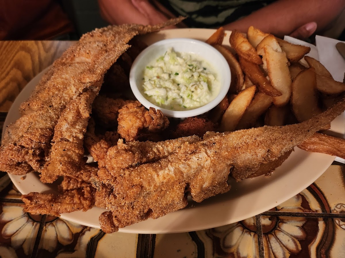 My husband and I shared the seafood platter. It was very good. The coleslaw is excellent and the stuffed crab was tasty.